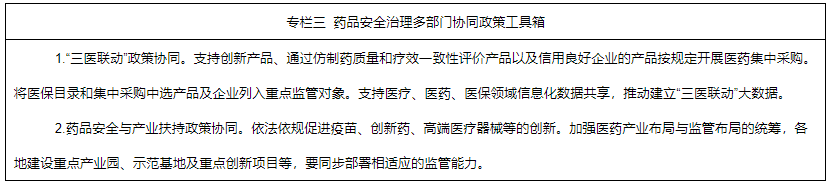 5.強(qiáng)化多部門治理協(xié)同。加快推進(jìn)“三醫(yī)聯(lián)動(dòng)”改革。藥品監(jiān)管、公安、工信、衛(wèi)生健康、醫(yī)保、發(fā)展改革、財(cái)政、科技等部門加強(qiáng)資源共享和政策協(xié)調(diào),建立藥品安全治理多部門協(xié)同政策工具箱。發(fā)揮藥學(xué)科技社團(tuán)組織、新聞媒體作用,加大科普宣傳力度,舉辦全國安全用藥月和醫(yī)療器械、化妝品安全科普宣傳周等品牌活動(dòng),提升全民安全用藥用械用妝科學(xué)素養(yǎng)。進(jìn)一步完善有獎(jiǎng)舉報(bào)制度,暢通投訴舉報(bào)渠道,充分發(fā)揮12315熱線和全國12315平臺(tái)作用。將藥品安全信用狀況依法記入企業(yè)和個(gè)人信用記錄,納入全國信用信息共享平臺(tái),將嚴(yán)重違法失信企業(yè)和個(gè)人列入市場監(jiān)督管理嚴(yán)重違法失信名單,依法依規(guī)實(shí)施跨行業(yè)、跨領(lǐng)域、跨部門失信聯(lián)合懲戒。